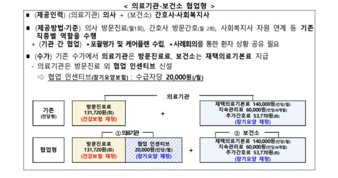 | 의사 | 월 1회 가정 방문 진료, 질환 관리 및 치료 방향 설정 |