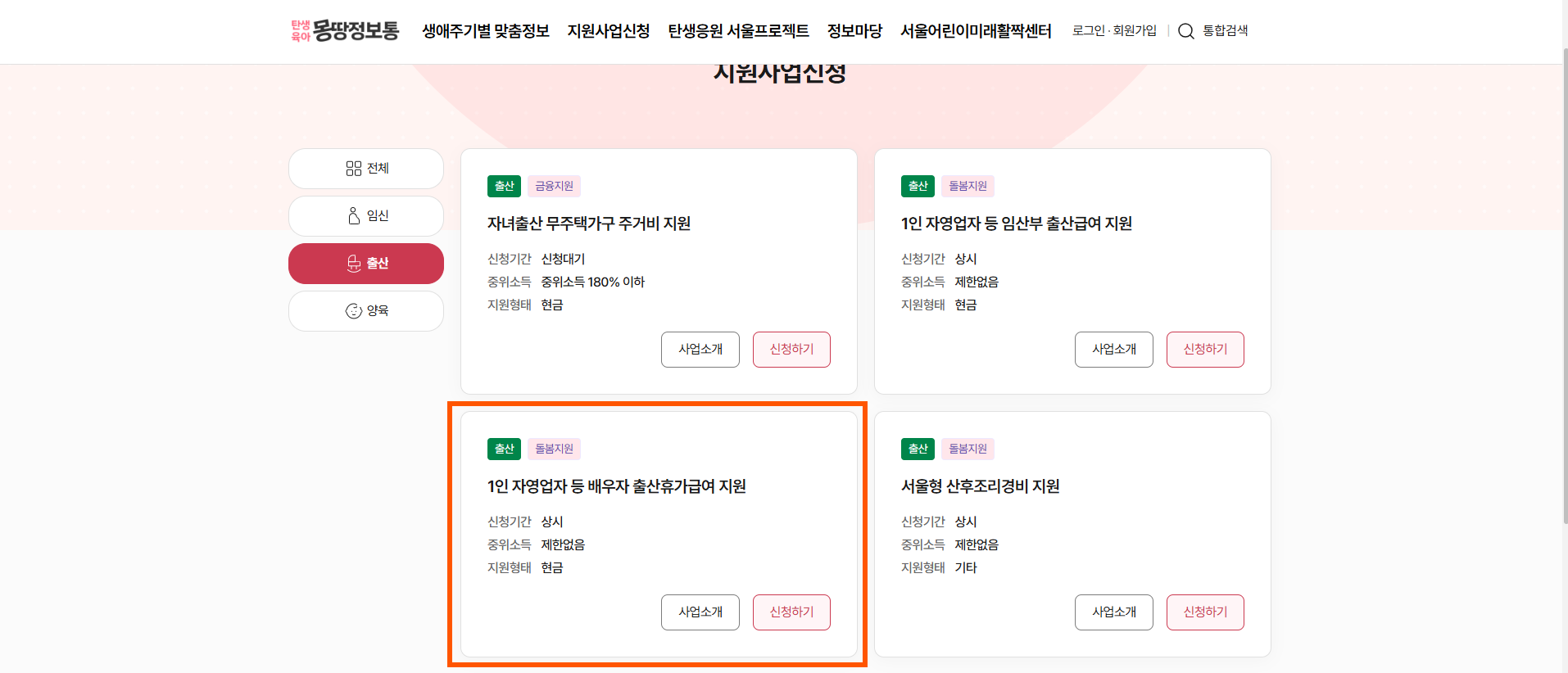- 출산한 1인 자영업자 또는 프리랜서 여성