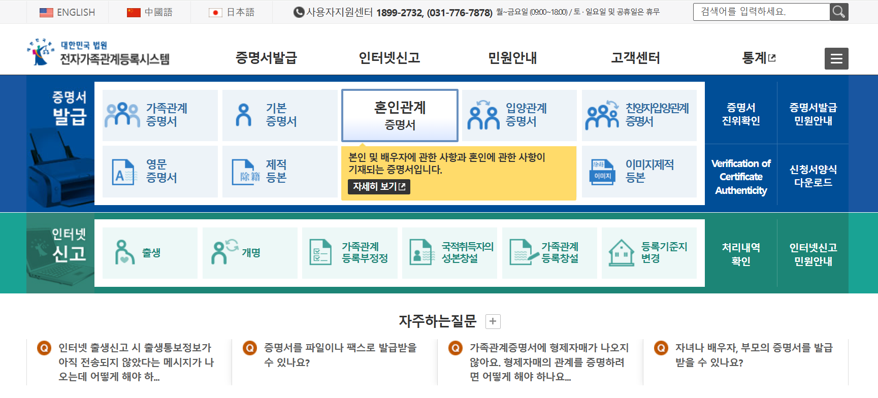 Q. 혼인관계증명서 대신 가족관계증명서로 대체할 수 있나요?